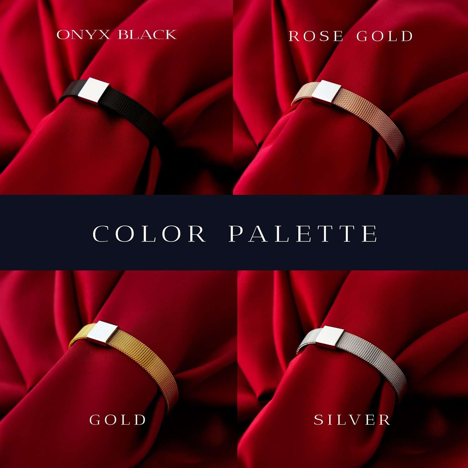 ▸ Strap Finishing: 18K Gold Plated, 18K Rose Gold Plated, Black PVD Plated or Mirror Polished Stainless Steel